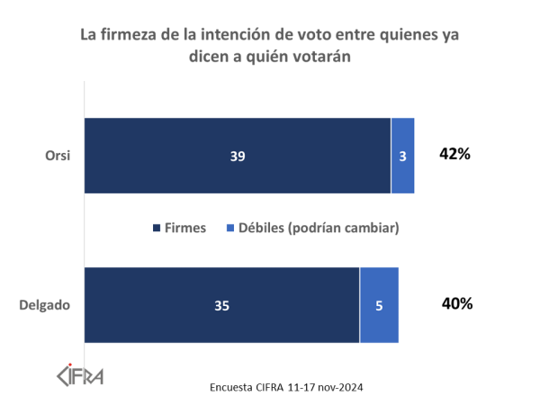 Además, solo el 39% está seguro de que votará a Orsi y no cambiará su voto a último momento, y solo el 35% está seguro de que votará a Delgado.