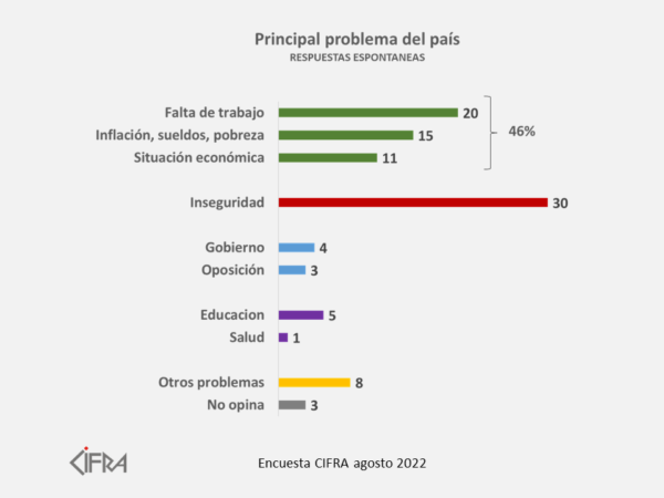 El 46% de la población piensa que el principal problema del país hoy está vinculado...
