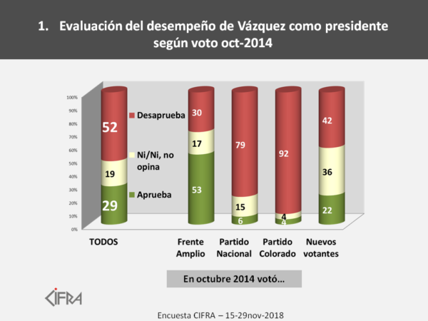 Hoy el 29% de los uruguayos aprueba de la gestión de Tabaré Vázquez como presidente...