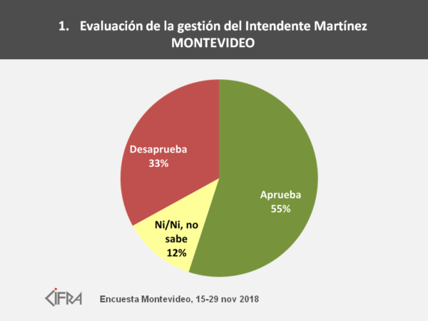 Hoy el 55% de los montevideanos apoya la gestión del Intendente Martínez y el 33%...