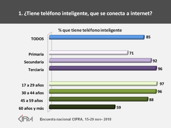 Hoy el 85% tiene un teléfono inteligente que le permite participar en las redes sociales...