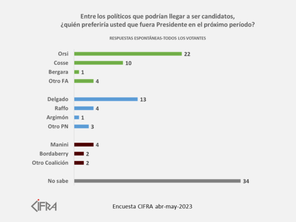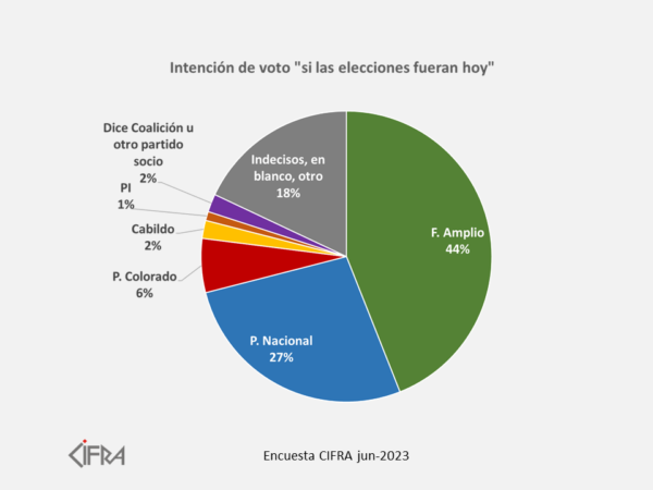 El 44% votaría al Frente Amplio, el 27% al Partido Nacional, el 6% al Partido...