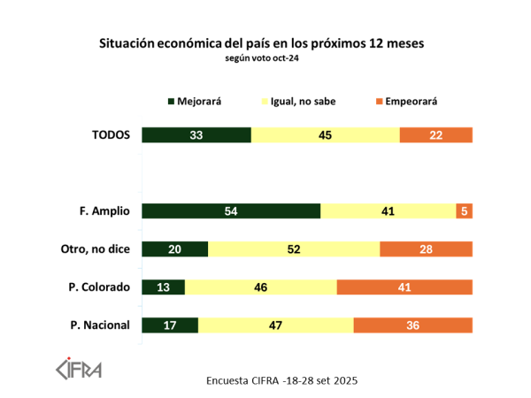 Esta nota presenta los resultados de una encuesta nacional telefónica (a teléfonos fijos y celulares) de CIFRA en todo el país: 803 entrevistados entre los días 18 y 28 de setiembre de 2025.